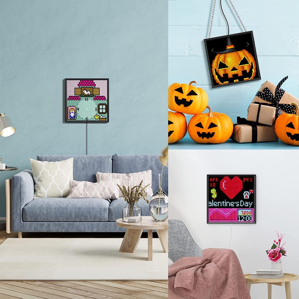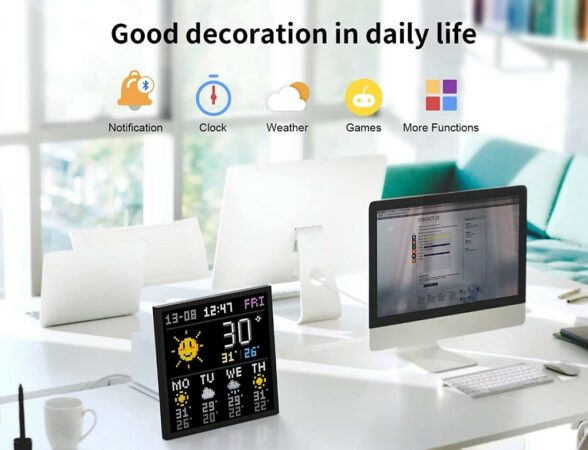 Dies ist jedoch nur ein kleiner Teil der Funktionen des Pixoo-64, es kann als Uhr und Indoor-Fotorahmen verwendet werden oder um ein Gaming-Setup zu vervollständigen, damit Twitch-Abonnenten oder ähnliches angezeigt werden können. Dank der eingebauten WIFI-Antenne verbindet sich das Gerät automatisch mit dem dafür vorgesehenen WLAN und ist damit unabhängig von dem eigenen Smartphone. Zum Beispiel ist die Uhr eine echte Bereicherung als Preisanzeige in verschiedenen Geschäften, an Wechselstuben kann die Uhr durch ihren Wechselkurs in Echtzeit glänzen, in Geschäften ist eine eigens gestaltete Preisanzeige für die dort verkauften Produkte sinnvoll, die mit Animationen grafisch auf sich aufmerksam machen kann.