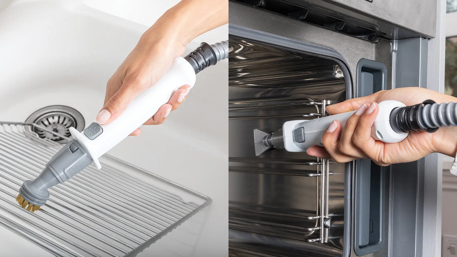 Das 2-in-1 Konzept des Dampfreinigers von Shark wird genutzt, indem die Basiseinheit des Geräts von der Bodenreinigungseinheit abgenommen wird. Dies funktioniert ganz einfach per Knopfdruck. Anschließend können die im Lieferumfang enthaltenen Zubehörprodukte wie der Zubehörschlauch und die Konzentrationsdüse genutzt werden, um alle weiteren Oberflächen abseits des Bodens zu reinigen. Arbeitsplatten, Fenster, Wandfliesen oder Armaturen können somit mithilfe des heißen Wasserdampfs vollkommen problemlos gereinigt und dauerhaft sauber gehalten werden. Mit speziellerem Zubehör wie der Spaltdüse können auch Fugen sehr konzentriert und ohne das Silikon oder Acryl beschädigende Reinigungsmittel gesäubert werden.