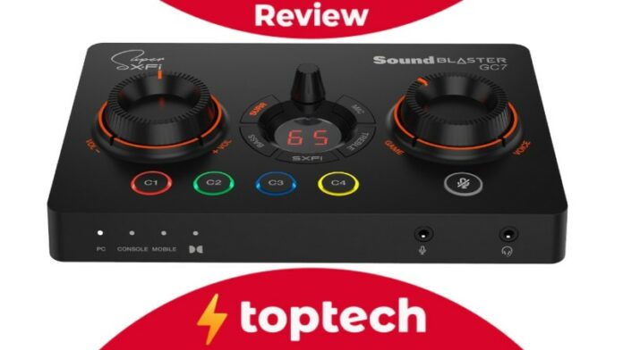 Creative Sound Blaster GC7 Game Streaming DAC Amp mit Programmierbaren Tasten, 7.1 Virtual Surround, Battle Mode, Scout Mode, GameVoice Mix, Dolby Audio, kompatibel mit PC, PS4/PS5, Nintendo Switch