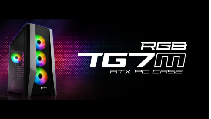 Wie auch seine Vorgänger verfügt das TG7M RGB über ein Seitenteil aus gehärtetem Glas auf der linken Seite, dessen Schrauben zugunsten einer aufgeräumten Präsentation der verbauten Komponenten von außen nicht sichtbar sind. Die Vorderseite wird durch zwei metallene Flügel in hellgrauem Kontrast umrahmt, welche das scharf geschnittene Design des Gehäuses abrunden sollen. Das Kabelmanagement des Gehäuses mit mehreren Kabeldurchlässen im Innern sorgt für eine ungehinderte Sicht auf die verbauten Komponenten. Mittels einer am Mainboard integrierten RGB-Steuerung mit einer Pinbelegung von 5V-D-G oder 5V-D-coded-G lässt sich die Beleuchtung nach Belieben individualisieren. Hinter dem Seitenteil aus gehärtetem Glas befindet sich zudem ein Netzteiltunnel mit Fenster zur ständigen Sicht auf das Netzteil.