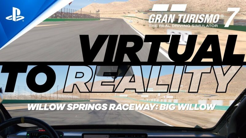 In Zusammenarbeit mit dem professionellen Rennfahrer Dai Yoshihara und dem Content Creator und Gran Turismo-Fan Steve Brown alias “Super GT” vergleichen Polyphony Digital in der “Virtual to Reality”-Videoreihe eine digitale Strecke von Gran Turismo 7 mit ihrem Pendant in der Realität. Für den Vergleich fahren sie auf dem Willow Springs Raceway, auch als “Big Willow” bekannt.