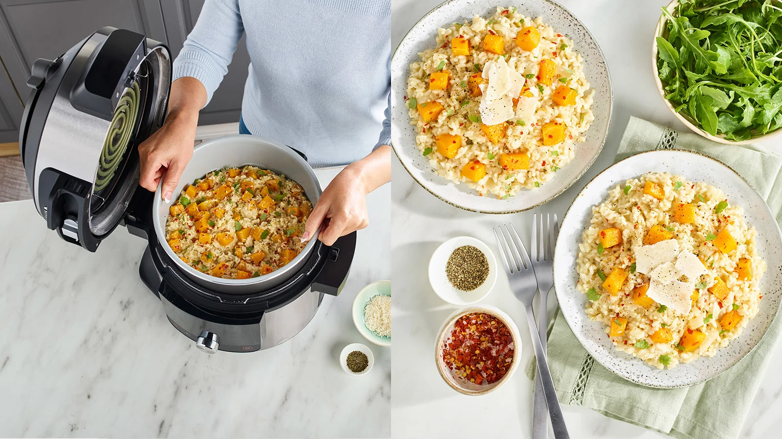 Mithilfe des Slow Cooking lassen sich Gerichte bis zu 12 Stunden garen, optimal für ein Risotto.
