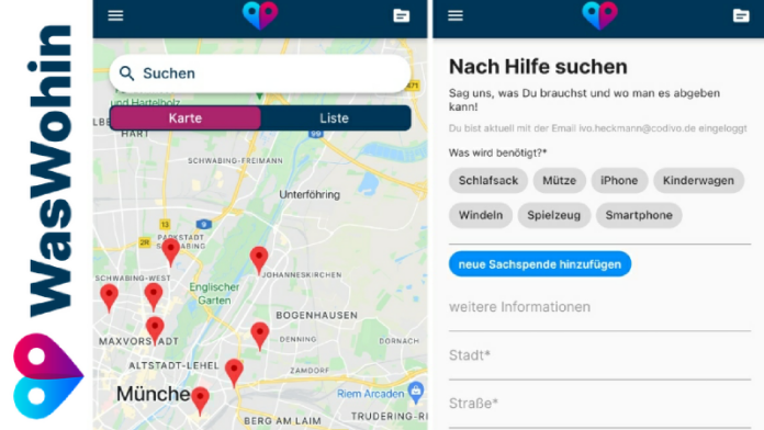 Immer mehr Menschen fliehen vor dem Krieg in der Ukraine nach Deutschland. Die Hilfsbereitschaft für die Neuankömmlinge ist riesengroß. Doch welche Sachspenden werden konkret in der eigenen Umgebung benötigt und wo können sie abgegeben werden? Um dieses logistische Problem in den Griff zu bekommen, haben sich einige engagierte IT-Experten aus München zusammengetan und innerhalb weniger Tage die Smartphone-App „WasWohin“ entwickelt. Wie der sprechende Name sagt, gibt die App einen schnellen Überblick auf der Landkarte, welche Hilfsgüter wirklich gerade wo benötigt werden. Hilfesuchende und Hilfswillige können so einfach, schnell und direkt in Kontakt kommen und die Hilfe für die Ukraine-Flüchtlinge lokal effektiver organisieren.
