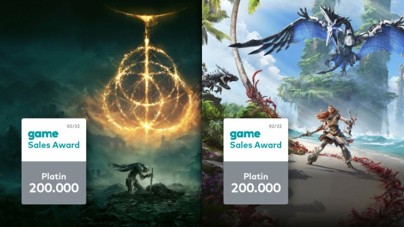 Im Februar kann der game – Verband der deutschen Games-Branche zwei Titel mit einem game Sales Award für besondere Verkaufserfolge auszeichnen. Zum einen ist es dem Action-Rollenspiel „Elden Ring“ bereits vier Tage nach seiner Veröffentlichung gelungen, die Marke von 200.000 verkauften Spielen zu knacken. Der gemeinsame Titel des japanischen Spiele-Entwicklers From Software und des „Game Of Thrones“-Autoren George R. R. Martin erhält hierfür einen games Sales Award in Platin. Und auch das Open-World-Action-Rollenspiel „Horizon Forbidden West“ konnte bereits wenige Tage nach Release im Februar die Hürde von 200.000 verkauften Spielen nehmen. In dem Nachfolger des 2017 erschienenen „Horizon Zero Dawn“ kämpft die junge Protagonistin Aloy dabei im postapokalyptischen Setting um nichts Geringeres als die Rettung der Menschheit. Auch dieser Titel erhält einen games Sales Award in Platin.
