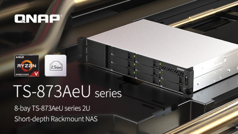 QNAP Systems, Inc., ein führender Innovator von Computer-, Netzwerk- und Speicherlösungen, hat heute die 2U Rackmount TS-873AeU NAS Serie mit kurzer Einbautiefe vorgestellt, einschließlich des TS-873AeU und TS-873AeU-RP, mit leistungsstarken und energieeffizienten AMD Ryzen Embedded V1500B 4-Core/8-Thread, 2,2 GHz Prozessoren der V1000 Serie. Die Serie ist in 8-Bay-Modellen mit einfacher und redundanter Stromversorgung erhältlich. Zudem eignet sich die TS-873AeU Serie für ressourcenintensive Anwendungen und Aufgaben wie virtuelle Maschinen, intensiven Mehrbenutzerzugriff oder hybride Cloud Anwendungen und ist damit eine kosteneffiziente Lösung für Unternehmen, die auf Virtualisierungs- oder VDI-Anwendungen angewiesen sind.