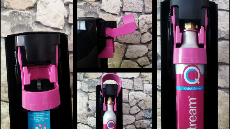 Die älteren Modelle hatten eine Aufnahme in der die Druckbehälter eingeschraubt werden müssten, hier haben sich die Entwickler von SodaStream aber etwas einfallen lassen um die Handhabung ein wenig einfacher zu gestalten. Ander als früher wird der Zylinder nur noch eingelegt und durch die Hebelmechanik in Position gebracht und mit dem Gerät verbunden. Durch das damit geänderte System bringt diese Innovation aber leider einen Nachteil mit… und zwar lassen sich die klassischen Discounter Zylinder die für einen geringeren Preis zu bekommen sind nicht mehr verwenden. Dabei ist der Preisunterschied nicht außer acht zu lassen und im Vergleich zu den günstigen alternativen der alten Geräte hätte man durchaus etwas sparen können. Mit diesem System wird man somit erstmal auf die hauseigenen Flaschen begrenzt sein. Wie dem auch sei ist es dennoch ein sehr angenehmes System.