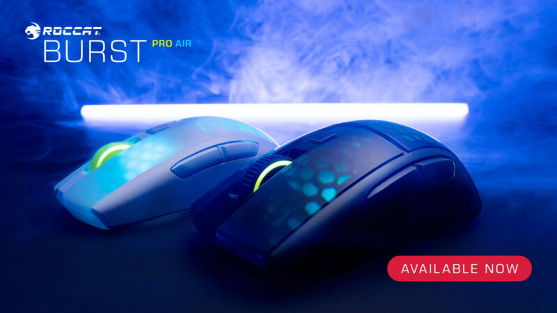 ROCCAT, die preisgekrönte PC-Peripheriemarke der Turtle Beach Corporation (Nasdaq: HEAR), kündigt heute die weltweite Verfügbarkeit der neuen kabellosen PC-Gaming-Maus Burst Pro Air an. Symmetrisch, kabellos, leicht und mit visuell beeindruckender RGB-Beleuchtung, ist die Burst Pro Air vollgepackt mit ROCCATs Kernkomponenten und Technologien.