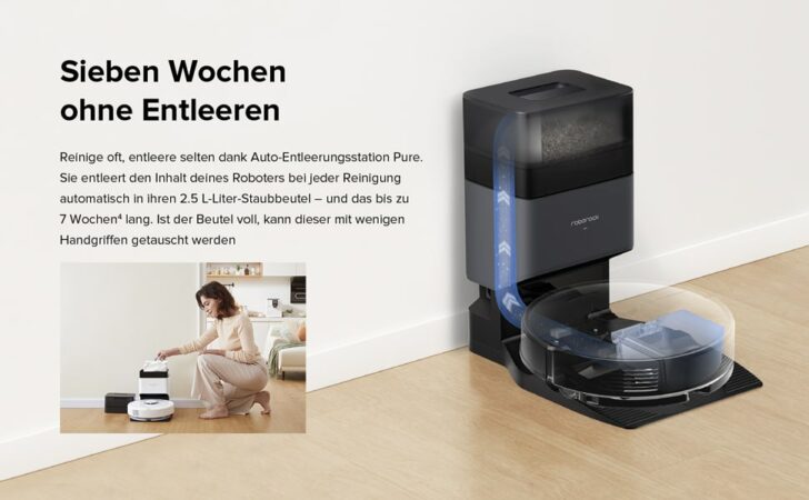 Bei herkömmlichen Saugrobotern muss man den Schmutzbehälter beinahe nach jeder Reinigung leeren. Das ist normalerweise kein Problem, kann im Alltag aber schnell vergessen werden. In einigen Fällen hat das dann zufolge, dass der Roboter aufgrund eines überfüllten Schmutzbehälters gar nicht erst losfährt. Das ist dann ärgerlich.