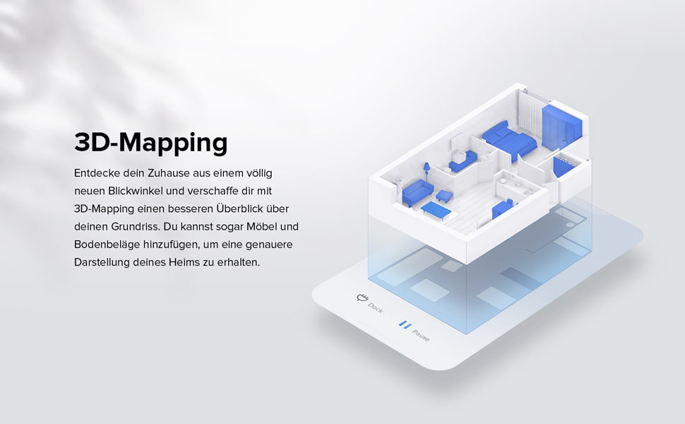 - Teppicherkennung (Saugkraft wird auf Teppichen erhöht).