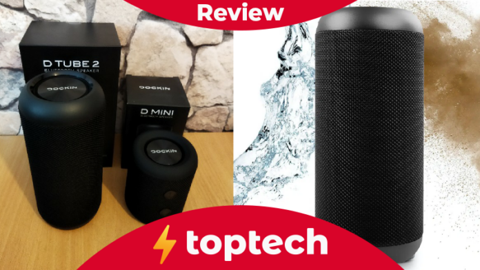 Der DOCKIN D Tube 2 hat eine Angabe von IPX6 was in etwa wie folgt zu beschreiben ist. Geräte mit IPX6 überstehen ein kurzes untertauchen und ist damit besser „spritzwassergeschützt“. Auch fallende Tropfen bei einem kurzen Regen machen einem Gerät mit IPX6 nichts aus.