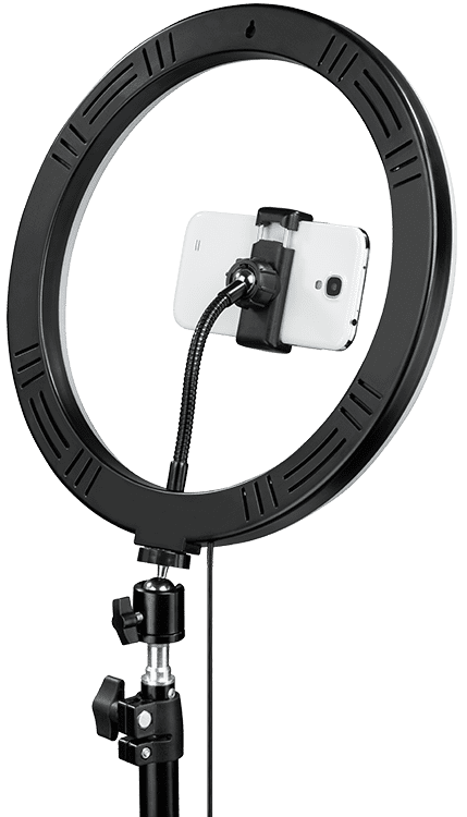 Das geringe Gewicht in Kombination mit der praktischen Tasche machen den Transport komfortabel einfach. Der Kugelkopf ermöglicht einen vollständig flexiblen Einsatz der Ringleuchte, sodass auch exakt so ausgeleuchtet wird, wie es benötigt wird.