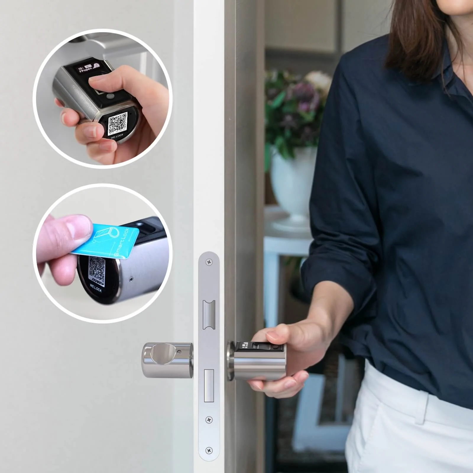 - Mehrere Möglichkeiten zum Entsperren:Öffnen Sie die Tür mit Fingerabdruck, mit einer RFID -Karte oder mit unserer App. Speicher für bis zu 100 Fingerabdrücke (3 davon mit Administratorfunktion). Bis zu 20 Karten können gepaart werden. Apps für iOS und Android sind verfügbar. App: Welock Lite.