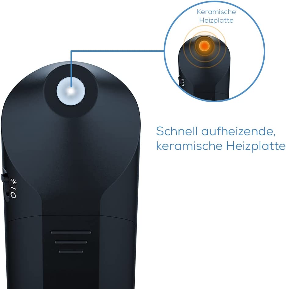 Der Alleskönner B 90 kommt in einem schicken, dunklen Design. Ein echter Hingucker. Die Farbe verrät uns sofort ihren Einsatzort und -zeit. Dieses Modell kommt mit einem zuschaltbaren Licht, das dabei helfen soll, Stiche im Dunkeln zielgerecht und präzis zu behandeln. Mit zwei Programmen kann man die Arbeit beginnen. Programm 1 eignet sich gut für die Erstanwendung und für Personen mit empfindlicher Haut. Für die regelmäßige Anwendung kann man das Programm 2 anwenden. Diese zwei Stufen sind auch beim Modell B 60 vorhanden. Was kann denn der B 90 anders? Die Antwort und somit das Highlight dieses Modells ist das Licht: Du schläfst mit offenen Fenstern im Sommer, eine Mücke summt in deinem Ohr. Kurz später beginnt der Juckreiz. Dafür brauchst du nicht die Lichter anzuschalten. Schnell kannst du auf deinen B 90 zugreifen und mit dem integrierten Licht präzis an den Stich rangehen. Eine Erleichterung!
