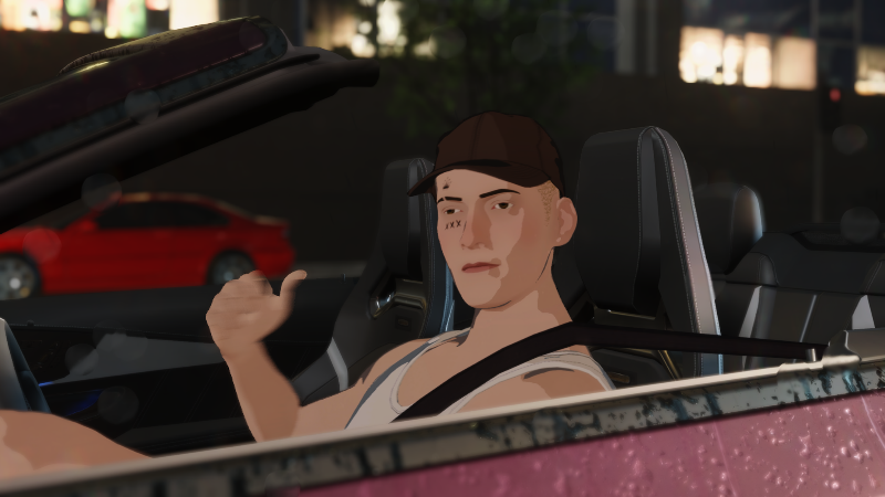 Den größten Unterschied merkt man allerdings schon, bevor man das erste mal hinterm Steuer sitzt, bei der Charaktererstellung. Hier setzt NFS:Unbound auf eine Comic-Grafik, wie wir sie vom Stil aus Spielen wie Borderlands kennen, oder wenn ich einen Film als Beispiel heranziehen müsste, wäre es Spiderman: A new Universe. Auch die Effekte der Autos sind in diesem Comic-Stil gehalten, was mir persönlich nicht ganz so gut gefallen hat. Meiner Meinung nach gehört der Graffiti-Effekt an eine Wand und weniger an bewegte Bilder. Objektiv gesehen sind die Effekte trotzdem gut gemacht und passen zum Gesamtbild des Racers. Bitte versteht mich nicht falsch, aber für mich waren die realistischen Effekte das Schöne an Need for Speed und jetzt bekommen wir „Comicfiguren“ in einer real wirkenden Welt.