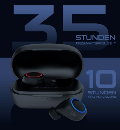 Hinzu kommt noch die Ladebox. Diese bietet weitere 2 ½ Aufladungen. Insgesamt hat man also bis zu 35 Stunden Zeit, bevor man die Creative Sensemore Air Kopfhörer wieder mit einer Steckdose verbinden muss.