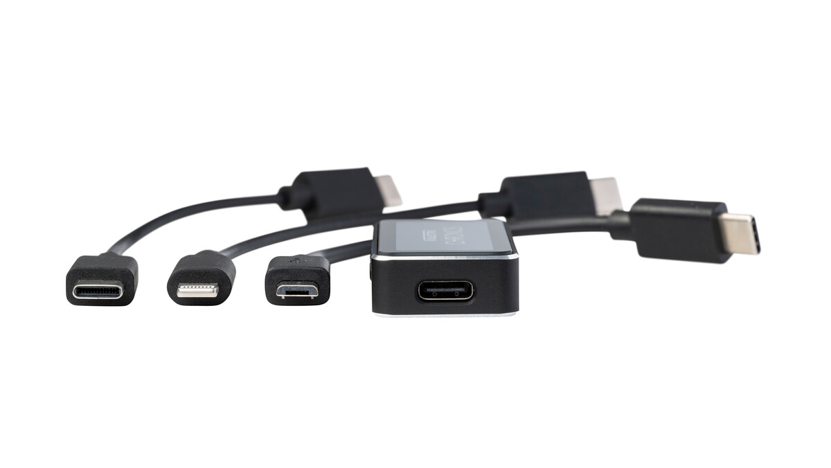 - 3 Adapterkabel (USB-C zu USB-C, USB-C zu Micro USB und USB-C zu Lightning)
