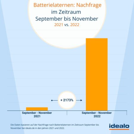 Das gesteigerte Kaufinteresse ist speziell in den Kategorien Taschenlampen und batteriebetriebene Campinglaternen zu erkennen. Wie die Grafik zeigt, entwickelten sich Batterielaternen zum absoluten Kassenschlager.