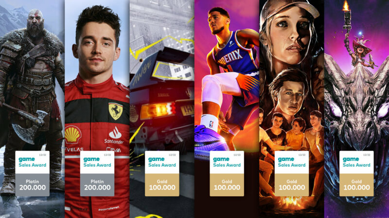 Im Dezember zeichnet der game – Verband der deutschen Games-Branche sechs Spiele mit einem game Sales Award aus. Für über 200.000 verkaufte Titel erhalten das epische Action-Adventure „God of War Ragnarök“ und das Formel-1-Rennspiel „EA SPORTS F1 22“ jeweils den game Sales Award in Platin. Mit „Need for Speed Unbound“ bekommt ein weiteres Rennspiel eine Trophäe für besondere Verkaufserfolge: Der EA-Titel hat sich über 100.000-mal verkauft und erhält somit einen Gold-Award. Den game Sales Award in Gold erhalten auch gleich drei Titel des Publishers 2K: Die Basketball-Simulation „NBA 2K23“, der Survival-Horror „The Quarry“ und das Action-Spiel „Tiny Tina´s Wonderlands“ haben ebenfalls die Marke von 100.000 Verkäufen geknackt.