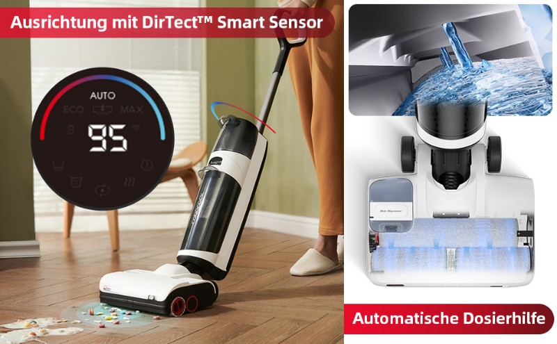 Ebenfalls bemerkenswert ist die Benutzerfreundlichkeit des Dyad Pro. Das LED-Display mit Akkuanzeige und die Sprachausgabe erleichtern die Bedienung, während das Zubehör und die Ersatzfilter eine lange Nutzungsdauer ermöglichen. Das Entnehmen und Reinigen der Schmutzwasser- und Frischwassertanks ist einfach und unkompliziert, was die Wartung des Geräts erleichtert.