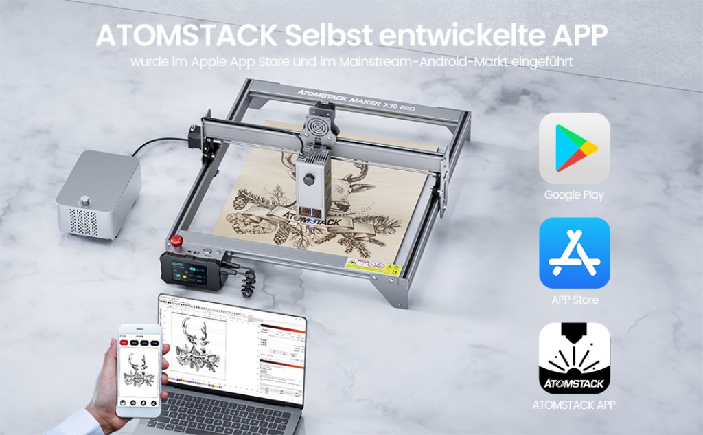 Ein weiterer großer Vorteil des Atomstack X30 Pro ist die Benutzerfreundlichkeit. Die Maschine ist einfach zu bedienen und verfügt über eine intuitive Software, die auch Anfängern eine einfache und schnelle Inbetriebnahme ermöglicht.