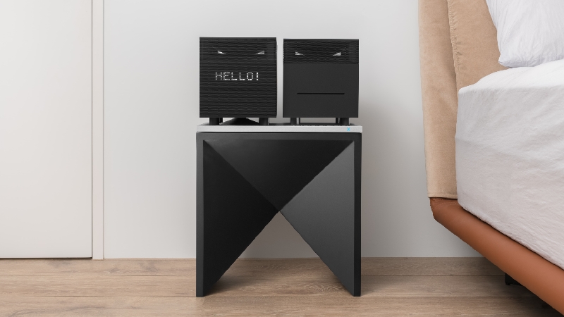 Das Aerix Duet besticht neben einem schlichten und zeitlosen Design mit einem eindrucksvollen atmosphärischen Klang. Die einzigartige Formgebung des Musiksystems bestehend aus zwei minimalistischen Würfeln auf einer hochwertigen Aluminiumplatte sorgt für einen optimale Musikwiedergabe überall im Raum. Auf dem integrierten LED-Display können Texte und Uhrzeit bequem und einfach abgelesen werden, ohne dabei von der Musik abzulenken. Das langsam pulsierende Licht in Kombination mit der Aluminiumoberfläche verleiht dem Aerix Duet-System schlichte Eleganz.
