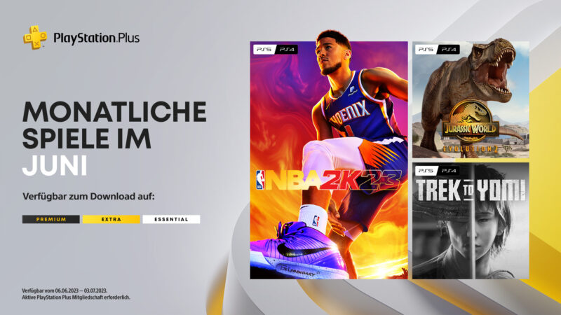 Ab dem 6. Juni dürfen sich PlayStation Plus-Mitglieder über die Spiele NBA 2K23, Jurassic World Evolution 2 und Trek to Yomi freuen.
