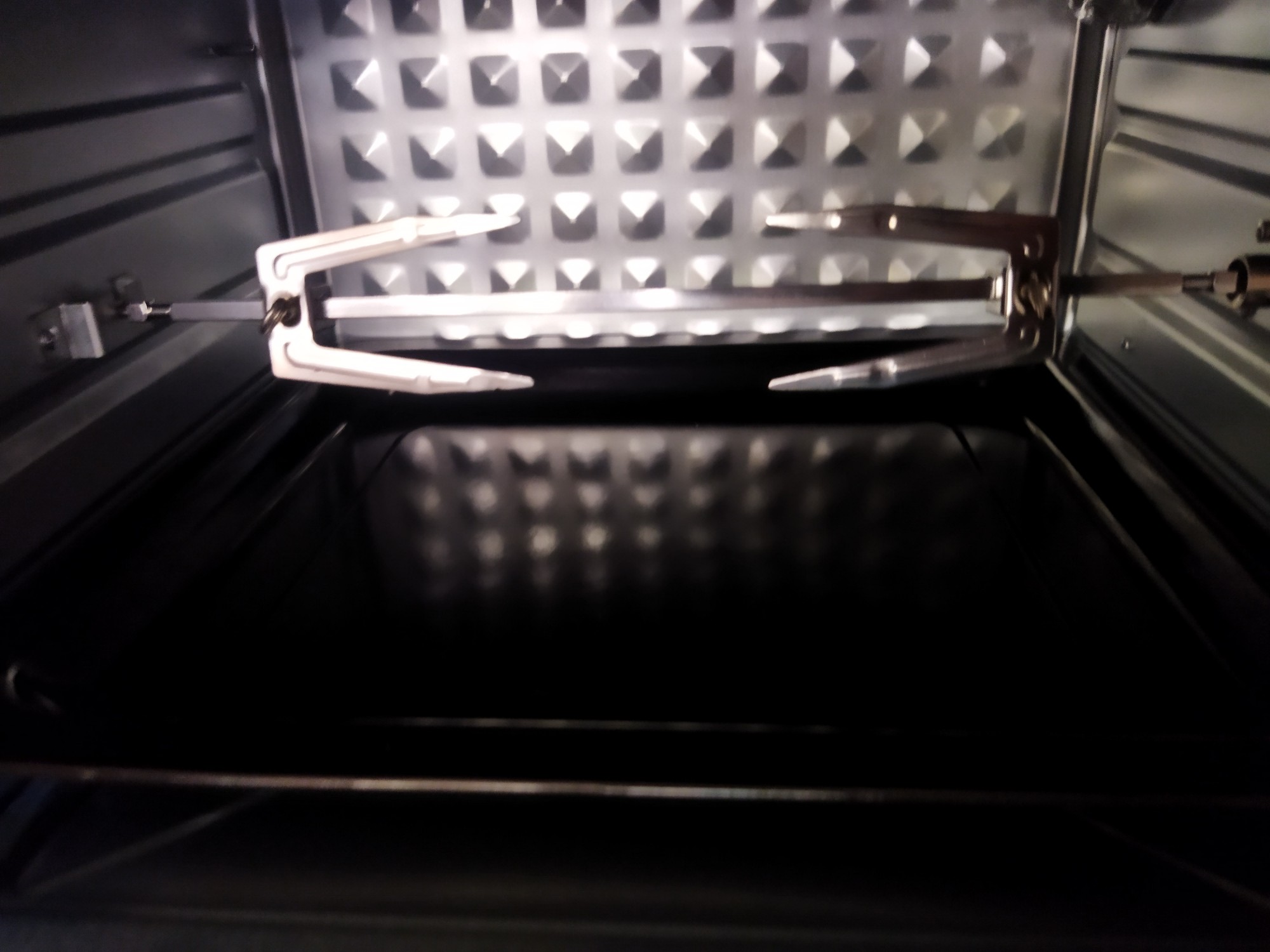 Bei der effektiven Größe hat der Innenraum die Möglichkeit, Bleche mit den Maßen von 33 x 28 cm aufzunehmen, das ist im Vergleich zu den Standards eines handelsüblichen Backofens nur etwa 55%.