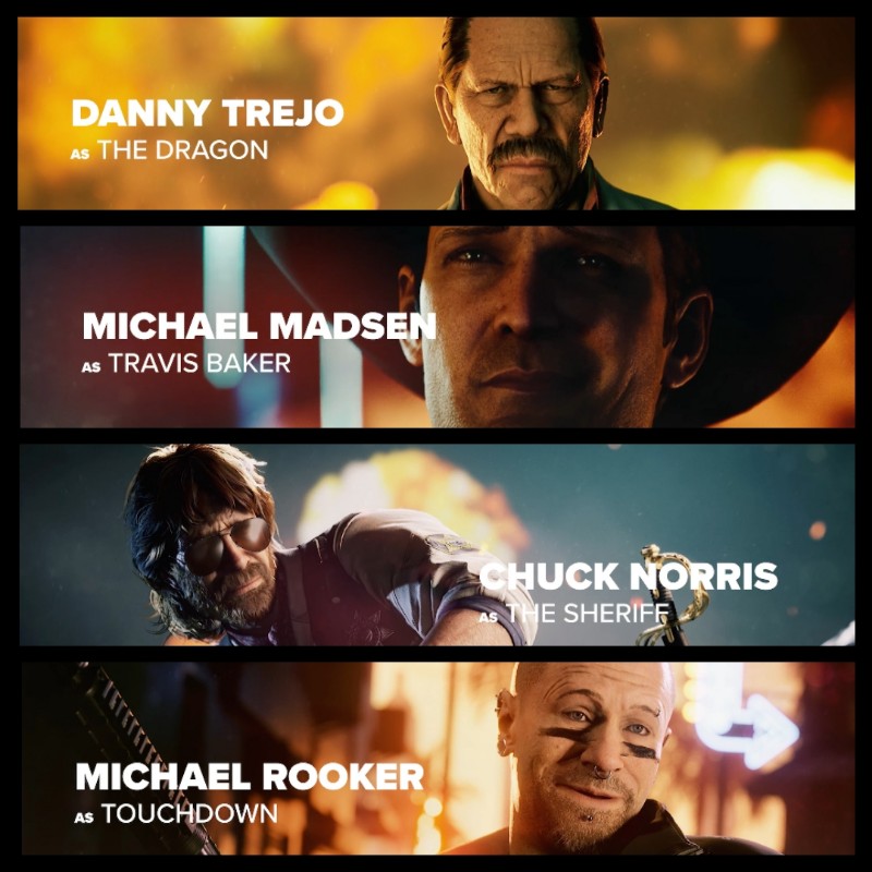 Bei Travis Baker haben Michael Madsen, dazu kommen Filmlegenden wie Danny Trejo aka Machete, Kim Basinger, Danny Glover, Michael Rooker und Rapper Vanilla Ice… was sich jetzt nach einem Tarantino Cast anhört, wird letztendlich noch durch den Bad-ass-kicker himself abgerundet, Chuck Norris, der uns als Sheriff Norris das Handwerk legen möchte.