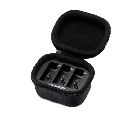 Wer mit der RØDE Kompakt-Funkstrecke Wireless GO II unterwegs ist, kann jetzt seine Module ganz einfach mit dem Charge Case aufladen – einem robusten Ladecase mit Kunstlederbezug und Ladestatus-LED, das zwei komplette Aufladungen aller drei Module ermöglicht.