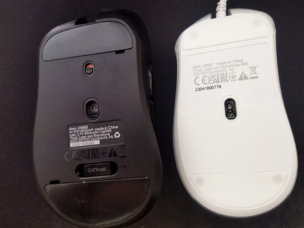 Beide Mäuse sind mit zwei zusätzlichen Tasten ausgestattet, die sich je nach Anwendung frei programmieren lassen. Als optisches Highlight hat die YBAR+ an der Unterseite eine LED Beleuchtung, die kontinuierlich die Farbe ändert. Im Gegenzug dazu hat die YBAR nur einen beleuchteten Schriftzug, der beim Ändern der Empfindlichkeit in einer anderen Farbe aufleuchtet. Für die Griffigkeit haben beide Varianten seitlich eine andere Struktur, während die kabelgebundene Trust YBAR+ eine Wellenstruktur aufweist, hat die kabellose Trust YBAR eine Wabenstruktur, die das Design offen und leicht erscheinen lässt.