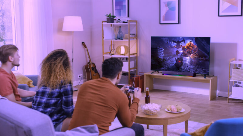 Egal ob Film oder Gaming – der Sound ist eine Komponente, die unglaublich wichtig ist. Das erzeugt eine gewisse Atmosphäre und untermalt Situationen. Besonders beim Zocken von Rollenspielen ist mir das wichtig, da unglaublich viele Emotionen nur über den richtigen Sound auch korrekt vermittelt werden können. Daher möchte ich, was den Sound angeht, keine Abstriche machen. Daher ist im Bereich Sound bei mir schon seit langer Zeit Creative das Mittel der Wahl. Und mit dem Sound Blaster Katana SE erhält die bekannte Katana Reihe ein weiteres Mitglied. Die Soundbar hat ihren Platz bei mir unter dem Fernseher gefunden und ergänzt nicht nur das Fernseh- und Filmprogramm, sondern wird auch beim Zocken mit der PlayStation 5 intensiv genutzt. Alternativ hätte man die Soundbar auch an die Wand montieren können.