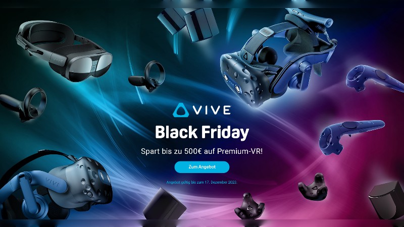 HTC VIVE bietet am Black Friday europaweit Sonderangebote auf sein VIVE XR- und VR-Portfolio sowie das entsprechende Zubehör an. Die Angebote sind auf VIVE.com, Amazon, Alternate, CaseKing, Conrad, Cyberport, Bestware (Schenker/XMG), MediaMarkt und Saturn sowie in der Schweiz bei Alltron und Digitec erhältlich.