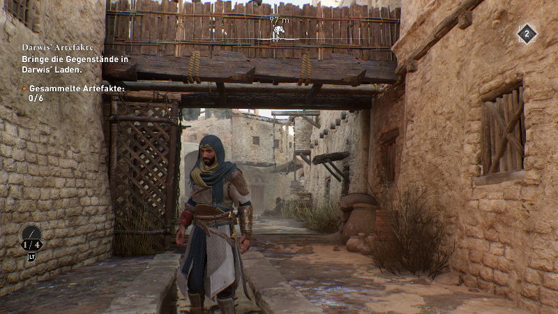 Bei der Steuerung mit dem Controller hat Assassin’s Creed Mirage aber weiterhin mit den gleichen Problemen zu kämpfen, die man seit dem ersten Teil kennt. Die Dynamik im Kampf ist zwar in Ordnung und solange man sich sauber auf den Parkourstrecken befindet läuft die Bewegung flüssig. Sobald man sich aber an typischen stellen wie Fenstern oder kleinen Vorsprüngen festbugt fängt das altbekannte Fluchen wieder an. Wie oft hab ich an einer Ecke im Fensterrahmen gehangen, obwohl ich hindurch wollte, oder warum hänge ich an einer Kiste obwohl ich drüber wollte. Ja, das hat sich leider nicht geändert.