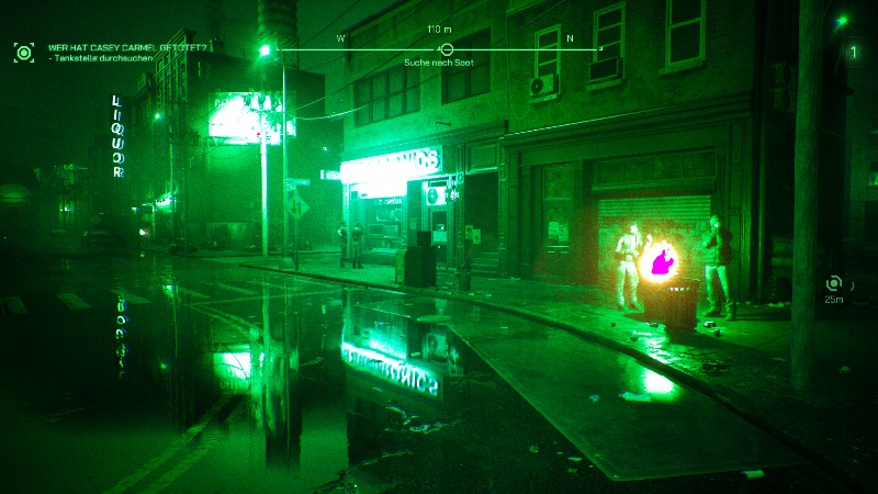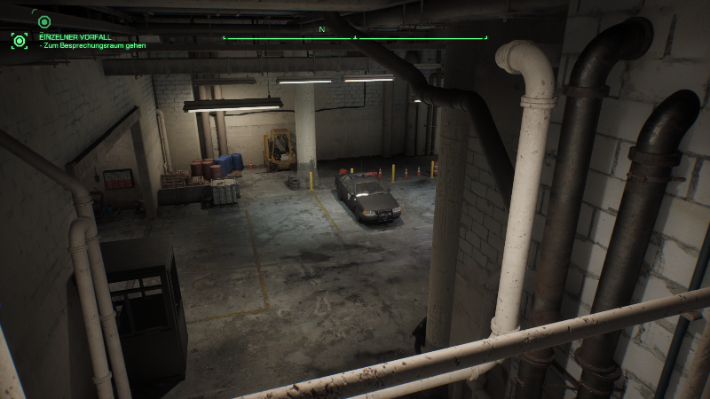 Auf dem Weg ins Aufnahmestudio begegnen wir den Gangmitgliedern, denen wir alle ein bissel Blei verpassen. Dieses Tutorial bringt uns die Steuerung und möglichen Aktionen in Form von Tooltips näher. Neben dem einfachen Geballer scannen wir die Umgebung und finden zusätzliche Informationen, suchen Möglichkeiten um uns Wege zu eröffnen wie einen Fahrstuhl zu aktivieren und brechen Türen auf. Beim Erstürmen von Räumen kommt auch ein Bullettime Event ins Spiel, der die Zeit verlangsamt und uns in Zeitlupe durch Gegnermassen ballern lässt. Am Ende der ersten Mission bekommen wir einen Vorgeschmack, was im Kopf von Murphy vorgeht, der Zwiespalt zwischen dem menschlichen Verstand mit seinen erlittenen Traumata und der Funktion als Maschine im Auftrag der Polizei.