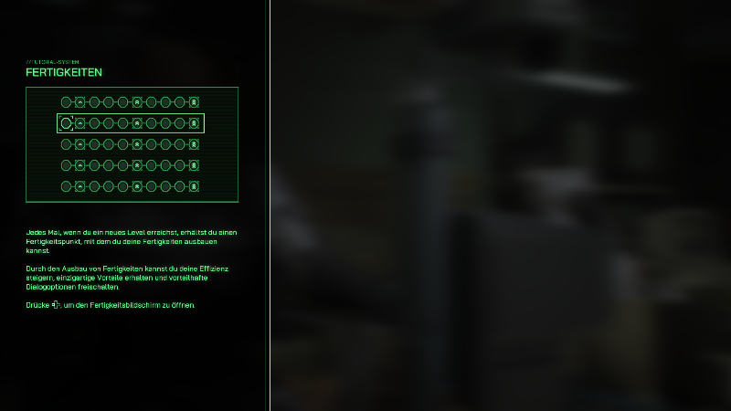 Mit den erhaltenen Erfahrungspunkten schaltet ihr Fähigkeitspunkte frei, die wir auf verschiedene Kategorien verteilen können, um stärker zu werden. Mehr Schaden, mehr Rüstung oder Leben, Mobilität oder Hervorheben von vorteilhaften Antworten in Gesprächen und zusätzliche Aktionen können so aktiviert werden, um mit den zukünftigen Gefahren besser fertig zu werden.