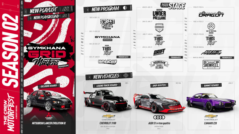 Ubisoft kündigte heute den Start der zweiten Saison von The Crew Motorfest an, die spannende, neue Inhalte präsentiert und in Zusammenarbeit mit der renommierten Motorsportmarke HOONIGAN entwickelt wurde. Als Teil dieser Partnerschaft wurde ein von Gymkhana inspirierter Spielplatz auf der Karte des Spiels hinzugefügt, außerdem neue Herausforderungen, neue Rennen und vieles mehr. Insgesamt bringt Season 2 im Laufe von 14 Themenwochen 24 neue Fahrzeuge, darunter kultige Modelle wie den Mitsubishi Lancer Evo IX oder den Lamborghini SC20.