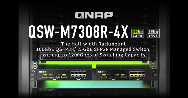 QNAP Systems, Inc., ein führender Innovator von Computer-, Netzwerk- und Speicherlösungen, hat heute den neuen 100GbE QSFP28/25GbE SFP28 Managed Switch QSW-M7308R-4X vorgestellt. Der QSW-M7308R-4X bietet eine Switching-Kapazität von bis zu 1200Gbps in einem kompakten Rackmount Gehäuse mit halber Breite und erfüllt die hohen Bandbreitenanforderungen von Big Data Speicher, Videobearbeitung, Virtualisierung und KI-Anwendungen, um die Bereitstellung von High-Speed Datenspeicherzentren, intelligenten medizinischen Anwendungen und professionellen Multimediastudios zu beschleunigen.