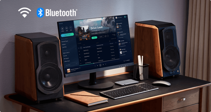 Zusätzlich unterstützen die Lautsprecher Apple AirPlay, Amazon Alexa und Spotify, sodass Sie ein Multi-Room-Musiksystem einrichten und synchronisierte Musikwiedergabe in verschiedenen Räumen genießen können. Die Lautsprecher sind auch mit TIDAL Connect kompatibel, was eine hochwertige Hörerfahrung mit verlustfreier Musik ermöglicht.