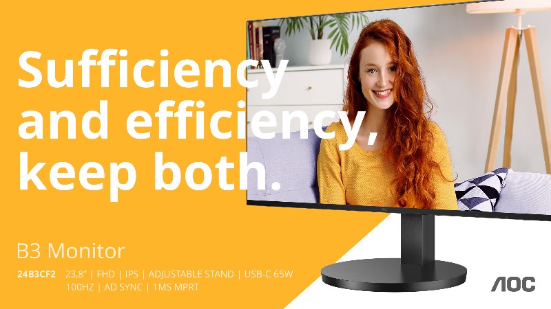 Display-Spezialist AOC präsentiert mit der B3-Serie eine Neuauflage seiner B2C-Monitore der Einstiegsklasse, die für moderne Heim- und Büroumgebungen entwickelt wurde. Die neue B3-Serie im eleganten Design umfasst zwei 60 cm (23,8″) Modelle (AOC 24B3CF2 und 24B3CA2) sowie zwei 68 cm (27″) Varianten (AOC 27B3CF2 und 27B3CA2) mit IPS-Panel, Full-HD-Auflösung, einer Bildwiederholrate von 100 Hz, USB-C-Konnektivität und 65 W USB Power Delivery.
