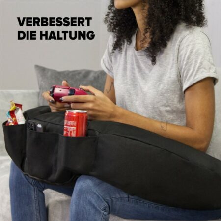 Die Seitentaschen des GamerPad Classic bieten eine einfache und effiziente Lösung zur Aufbewahrung von Gaming-Zubehör und persönlichen Gegenständen. Diese Funktion ist besonders nützlich, da sie es dem Nutzer ermöglicht, wichtige Gegenstände wie Smartphones, Fernbedienungen, Gaming-Controller und sogar Snacks in unmittelbarer Nähe zu halten. Die Notwendigkeit, das Spiel zu unterbrechen, um nach diesen Gegenständen zu suchen, wird somit eliminiert, was zu einer nahtlosen und unterbrechungsfreien Gaming-Erfahrung führt.