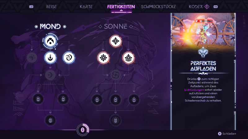 Neben den aktiven Fähigkeiten, die sich durch das Sammeln von Energie (vgl. Level) verstärken lassen, sind in der Welt noch Schmuckstücke zu finden, um Zau passive Effekte mit auf den Weg zu geben, diese können allerdings nur an speziellen Punkten auf der Karte gewechselt werden.