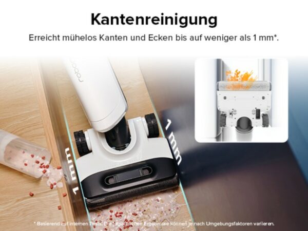 Der innovative Reinigungskopf-Suchscheinwerfer beleuchtet dunkle Ecken und zeigt, wo sich Staub und Schmutz verstecken. So bleibt kein Bereich unentdeckt. Mit dieser Kombination aus hoher Saugkraft und durchdachtem Design sorgt der roborock Flexi Pro dafür, dass der gesamte Wohnbereich makellos sauber wird.