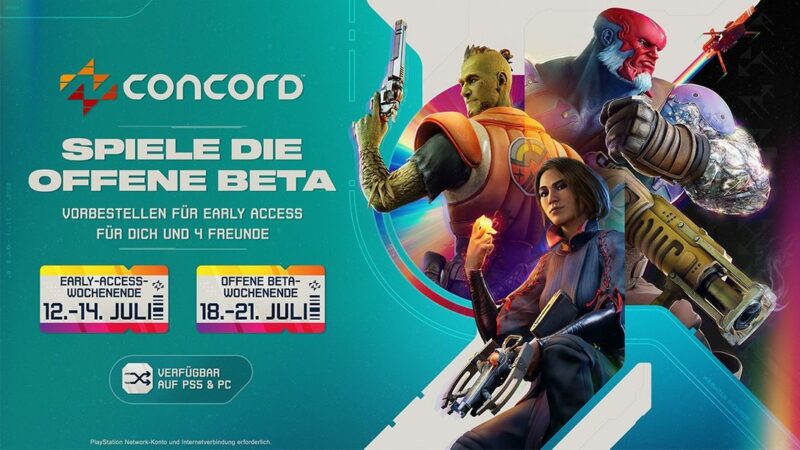 Die Beta-Phase von Concord beginnt mit einem Early-Access-Wochenende für PS5 und PC vom 12. Juli bis zum 14. Juli. Alle Vorbesteller einer beliebigen Edition von Concord erhalten fünf Codes für sich und vier ihrer Freunde, um zu den ersten Spielern zu gehören. Vom 18. bis zum 21. Juli folgt dann die offene Beta. In beiden Beta-Phasen stehen alle 16 Freegunner zur Verfügung, zudem gibt es die Möglichkeit des Cross-Plays zwischen PS5- und PC-Nutzern.