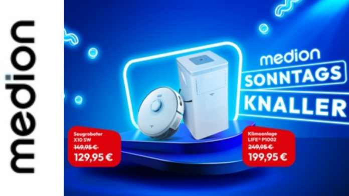 - Highlight im Juli: MEDION X10 SW Saugroboter für nur 129,95 Euro (statt 149,95 Euro) und MEDION LIFE P1002 Klimaanlage für nur 199,95 Euro (statt 249,95 Euro)