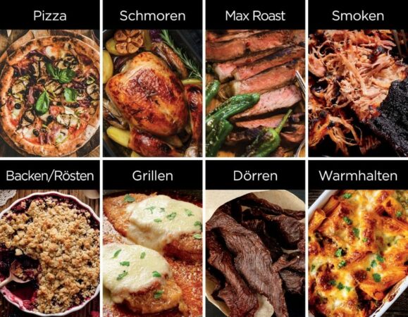 Dieser Outdoor Ofen bietet eine beeindruckende Auswahl an acht verschiedenen Kochprogrammen, die nahezu jede kulinarische Herausforderung meistern. Ob Pizza backen, Schmoren, Rösten oder sogar Smoken – dieser Ofen verwandelt jede Mahlzeit in ein Erlebnis. Mit den Programmen kann man alles zubereiten, von einem zarten Braten bis hin zu perfekt knusprigen Pizzen. Jedes Programm wurde präzise entwickelt, um optimale Ergebnisse zu garantieren.