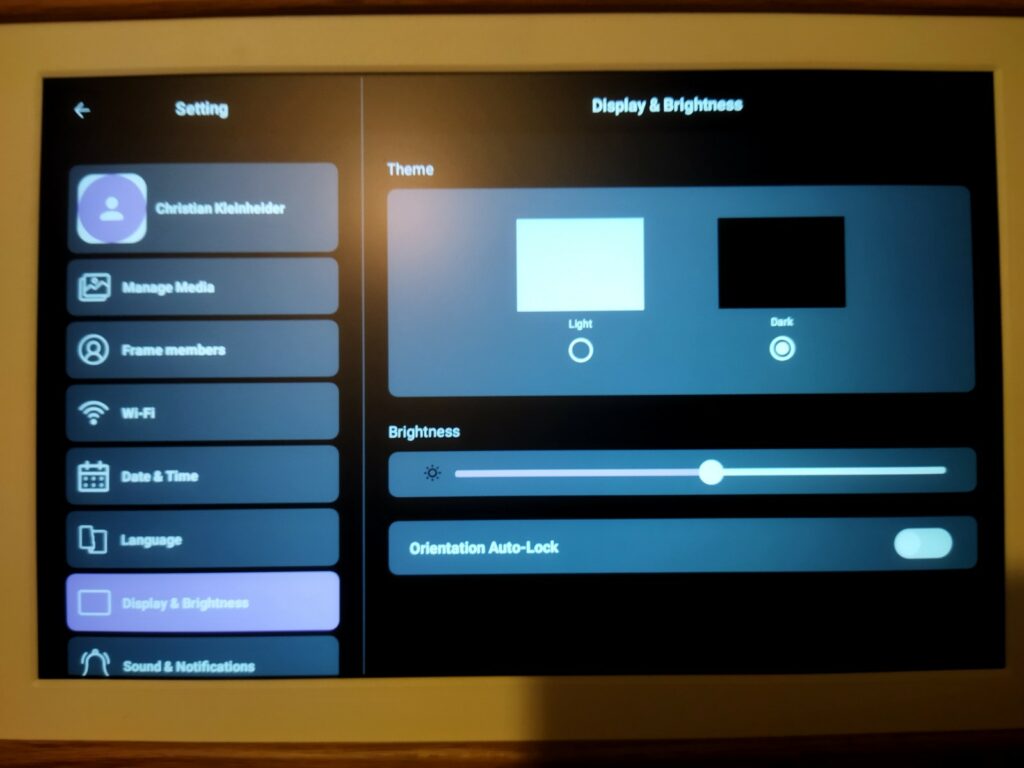 Durch das Betriebssystem FrameOS welches auf Android basiert ist für viele Benutzer die grundlegende Steuerung nichts Neues. Bilder können vor und zurück geswiped werden, wischt man von oben nach unten, öffnet sich ein kleines Menü, wie man es ebenfalls beim Smartphone kennt… die Bedienbarkeit ist somit schon mal kein Hexenwerk. Im Detail bietet die Anleitung an der Stelle einen guten Leitfaden zur Einrichtung der Software und der MyFirst Circle App, mit der man auch von jedem Ort der Welt (solange man Empfang hat) seine Bilder auf dem MyFrame und den verbundenen Nutzern teilen kann.
