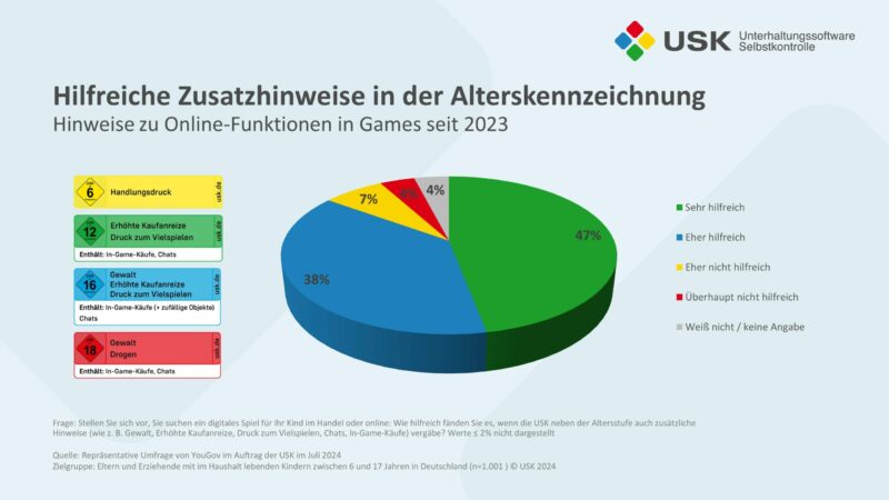 Bei der Studie handelt es sich um eine repräsentative Online-Umfrage unter Eltern und Erziehungsberechtigten mit im Haushalt lebenden Kindern im Alter zwischen 6 und 17 Jahren in Deutschland. Erstellt wurde die Studie vom Markt- und Meinungsforschungsinstitut YouGov im Auftrag der USK im Juli 2024 (n=1.001).