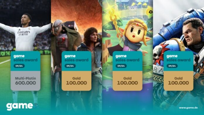 Vier Titel zeichnet der game – Verband der deutschen Games-Branche mit dem game Sales Award für besondere Verkaufserfolge für September aus. Die Fußballsimulation „EA SPORTS FC 25“ verkaufte sich innerhalb weniger Tage nach ihrer Veröffentlichung Ende September über 600.000 Mal und bekommt für diesen Erfolg eine Multi-Platin-Trophäe. Das Action-Adventure „Star Wars Outlaws“ rund um die Abenteuer der Gesetzlosen Kay Vess in der Welt von „Star Wars“ konnte den Meilenstein von 100.000 verkauften Kopien erreichen und wird dafür mit einem Sales Award in Gold ausgezeichnet.