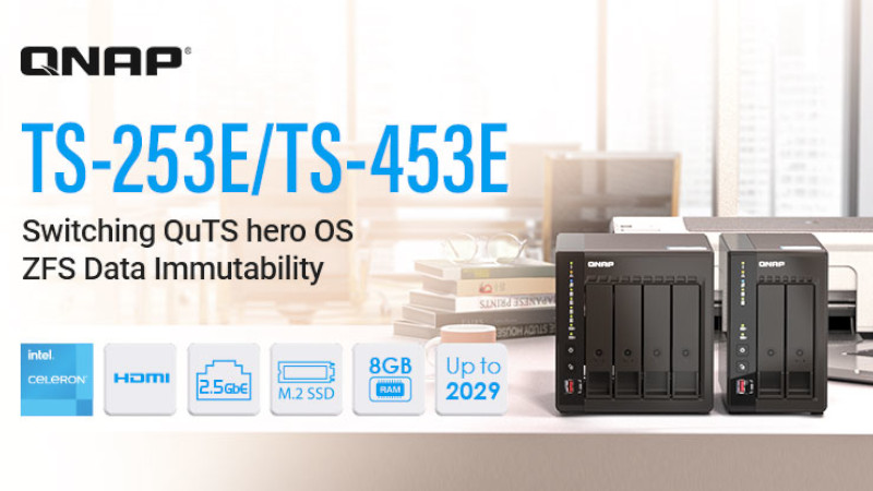 QNAP Systems, Inc., ein führender Innovator von Computer-, Netzwerk- und Speicherlösungen, gab heute bekannt, dass es die Unterstützung für QuTS hero, QNAPs ZFS-basiertem NAS Betriebssystem, zu seinen beliebten NAS Modellen TS-253E und TS-453E hinzugefügt hat.