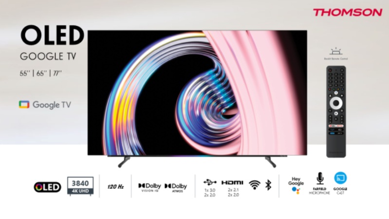Die THOMSON OLED Google TV-Serie wird online und bei führenden Elektronikmärkten erhältlich, zu einer UVP von: